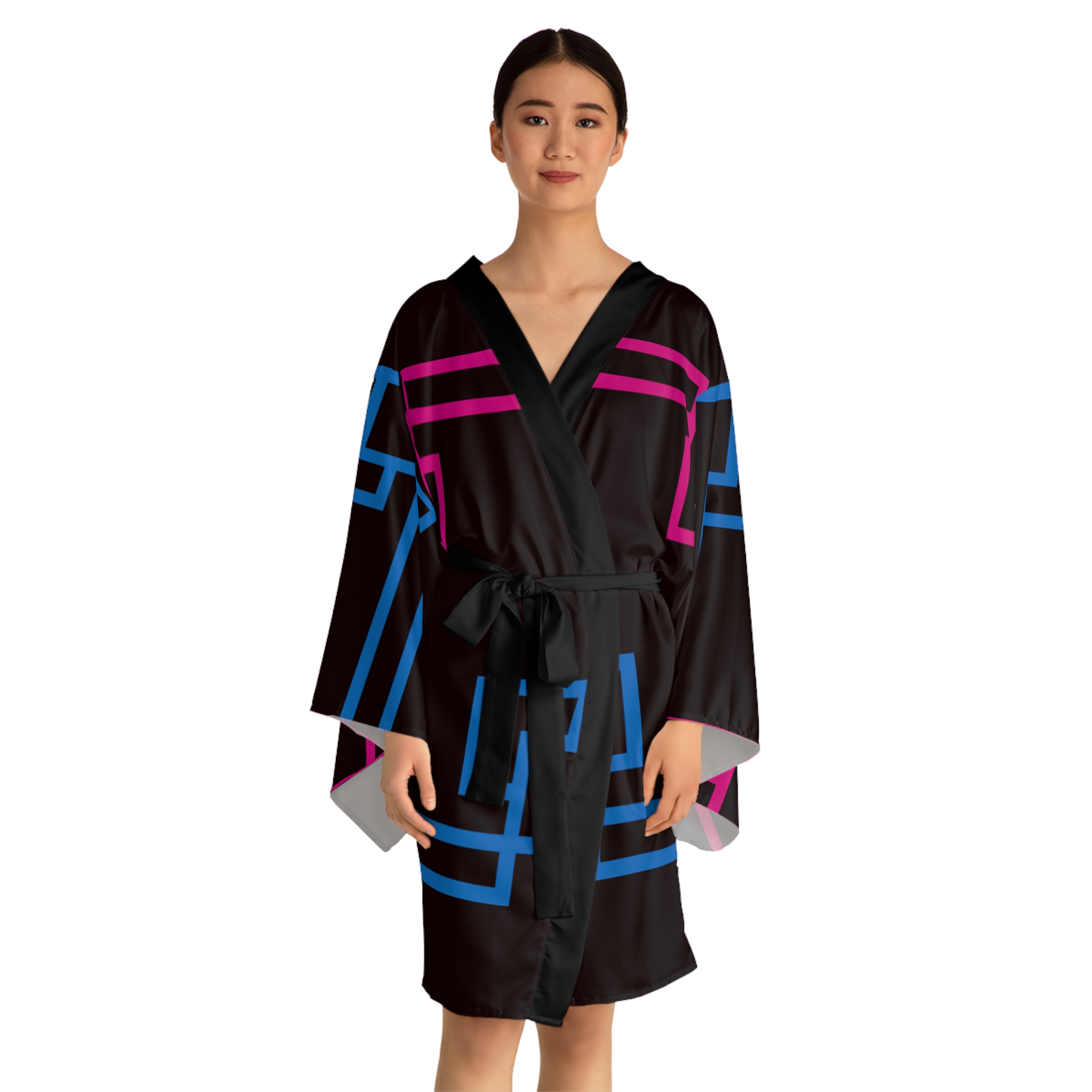 Whether it’s lounging at home or making a stylish appearance, these kimono-style robes are as beautiful as they are cozy. With a figure-flattering shape, this chic mid-length robe features the signature flowing bell sleeves and a belt, making it an absolute delight for Japanese style enthusiasts. Each kimono is 100% made with Polyester for that…